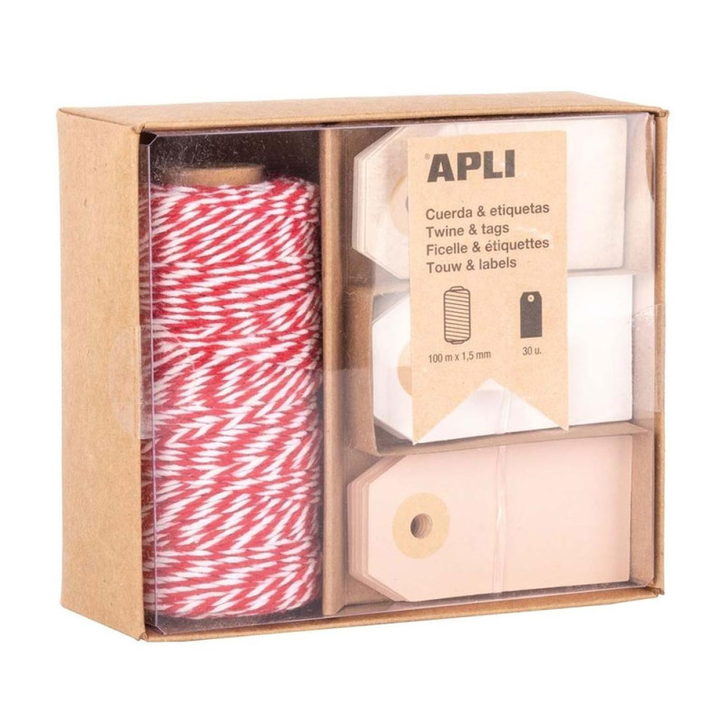 Fio Embrulho Algodão Vermelho/Branco Rolo 100m+30 Etiquetas - 1 unidade